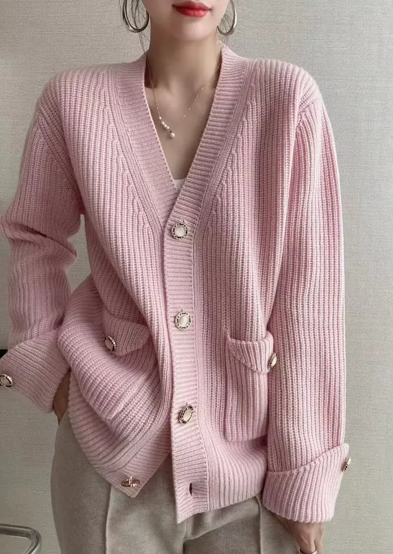 الصفحة الرئيسية اثاث سترة محبوكة نسائية بزر وجيب